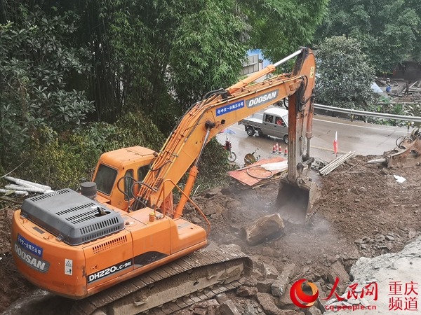 人民网重庆7月23日电 受近期连续强降雨影响,国道318线重庆万州境内发生多处泥石流塌方。正在万州担负公路工程建设任务的中交一公局三公司项目部干部职工闻汛而动,快速投入抢通道路攻坚战。截至7月22日,受损较为严重的万州长岭至长滩段22公里范围内,目前仅有两处较大规模的地方仍在紧张抢通中,除局部路段实行半幅警戒通行外,其余路段均恢复正常通行。