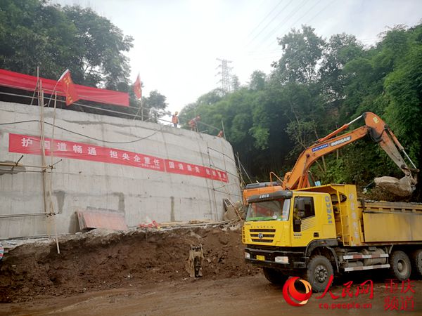 受领道路抢通任务的中交一公局三公司职工看在眼里,急在心里。他们第一时间集结挖掘机、装载机、冲击锤等专业装备,沿着塌方体紧急开辟出人行通道,保障临时通行。并迅速着手清理塌方体“卸载”减负,为砌筑挡墙永久性工程综合整治做准备。项目经理谭利华带领技术人员顶着暴雨踏勘现场,连夜绘制施工设计图纸,制定道路抢通方案。